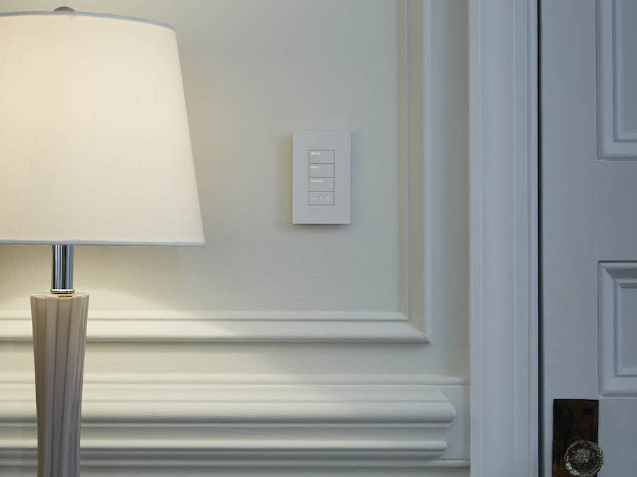 Programming scenes enables you to control multiple lights simultaneously. Press ‘Movie Night,’ and the lights dim in the media room. Tap ‘Dinner,’ and the lights in the kitchen fade while those in the dining area brighten.